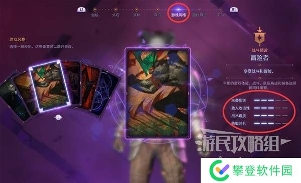 “游戏风格”其实就是难度选择,想专心体验剧情的朋友就选最左边的最简单难度“说书人”。最右边的“无拘无束”可以自定义各项难度。