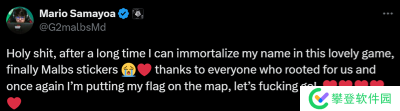 malbsMd:我勒个去,这么久之后我终于可以在这个可爱的游戏中与世长存了,Malbs贴纸!感谢所有支持我们的人了,我再次在地图上闪耀四方,冲冲冲!