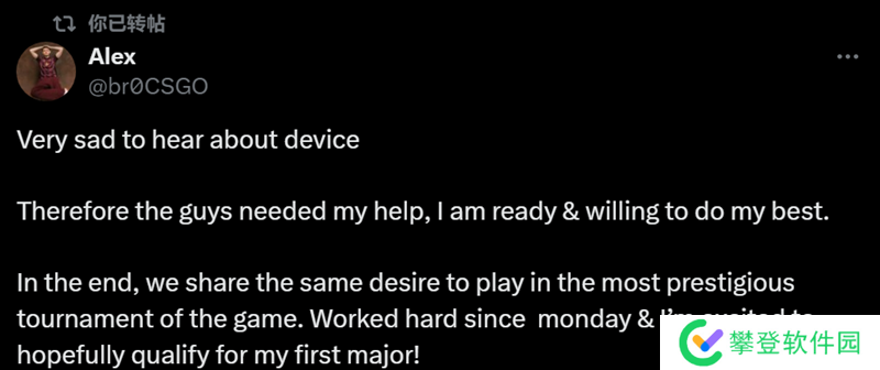 Astralis紧急启用br0作为临时第五人。br0也在社交平台上分享了自己的感受。