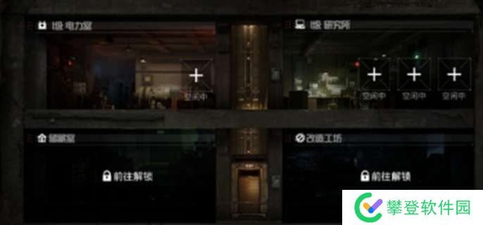 目前,避难所上线了电力室研究所、储藏室和改造工坊四个房间。