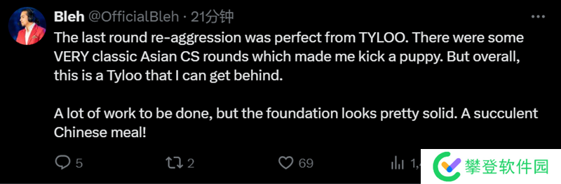 TYLOO在最后一轮的反攻非常完美。有一些非常经典的亚洲CS回合让我大吃一惊。但总的来说,这是我可以支持的TYLOO。还有很多工作要做,但基础看起来相当牢固。真是一顿丰盛的中餐!