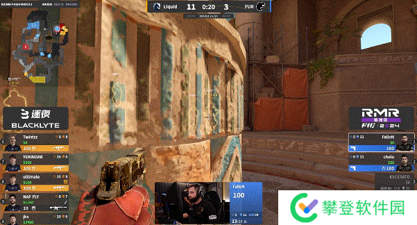 FURIA选图,Liquid先做进攻方,手枪局便秘进攻,最后五人上A小平推包点,赢下胜利后Liquid拿到2-0开局。