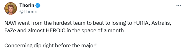 “在短短一个月内,NAVI从最具挑战性的战队转变为输给