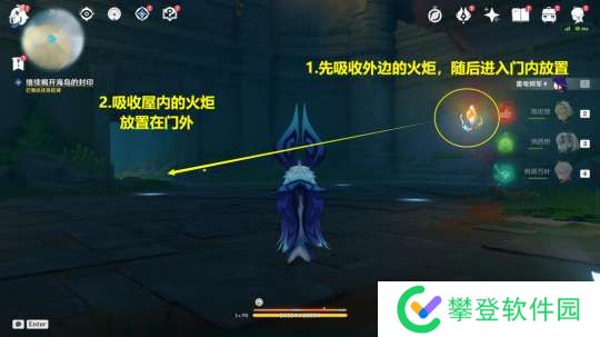16.随后将如图三处地点都放置上火炬,即可解开封印
