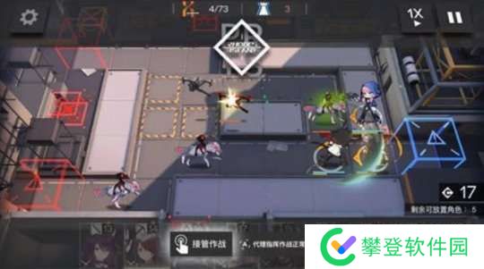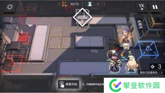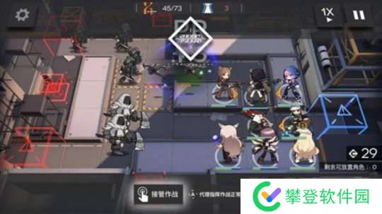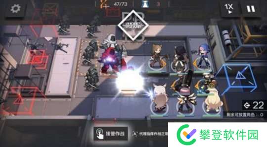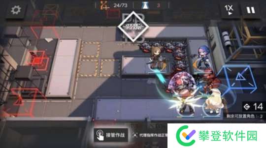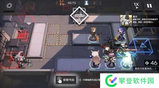 这一关前期很重要,我们先在门口放一个先锋抗怪+回费,然后旁边上一个狙击分担压力,这里先锋一定要是能扛得住的,并且挡二的比挡一要保险一点,开局只有30费,布置不了太多干员的。
