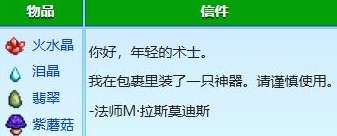 1、触发条件:当与法师的友谊值大于0时,法师会通过信件送一份礼物。