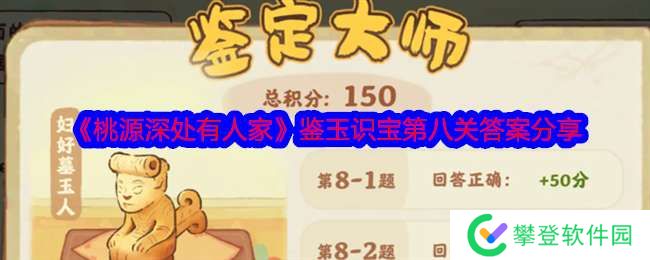 桃源深处有人家鉴玉识宝第八关答案是什么?鉴玉识宝活动当中一共有8个活动关卡,每个关卡有三个问题答案,本次给大家带来了《桃源深处有人家》鉴玉识宝第八关答案分享,大家不知道答案是速来看看正确答案吧!
