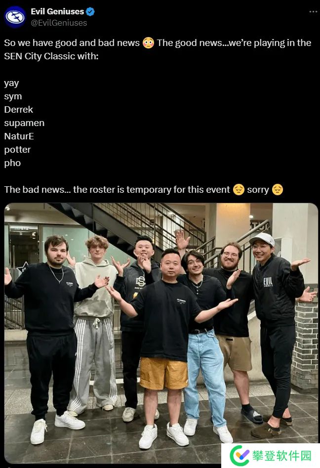 EG发布参加SEN所举办锦标赛大名单:yay与sym位列其中。不过EG也给这条消息打了个补丁,大致意思如下: