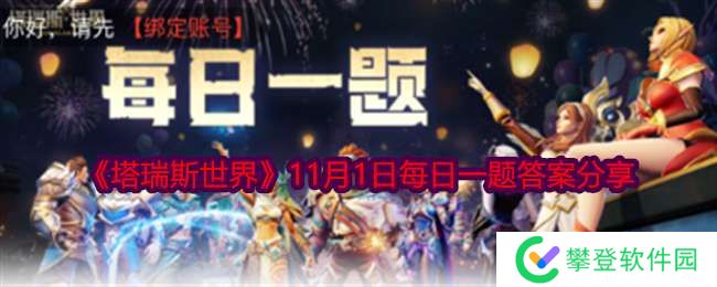 以上就是pk游戏网小编整理带来的《塔瑞斯世界》11月1日每日一题答案分享,更多精彩内容,请点击关注pk游戏网,小编将持续为您更新!