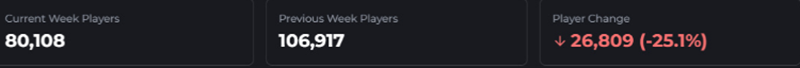 根据tracklock.gg的统计,相比于上周,活跃玩家减少了11871人,下降12.9%,而相比于排位开始第一周下降了26809人,下降25.1%。无论这个游戏的前景如何,这么高的玩家流失率与V社最近几次的平衡补丁对游戏机制的进一步调整密不可分,照此趋势下去,本周如果没有比较大的动作,玩家数量还会进一步减少。