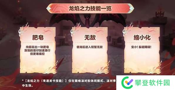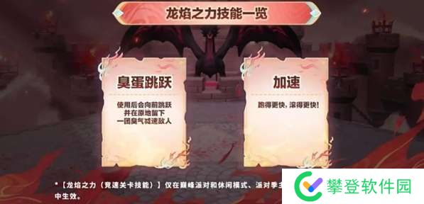 技能讲解:在竞速开始前,玩家们还可以在相同的三种龙焰之力中选择一个,作为额外的技能。
