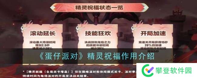 《蛋仔派对》在巅峰模式和休闲模式中上线了精灵祝福玩法,有不少小伙伴并不知晓这个新玩法的作用,所以今天小编来为大家带来蛋仔派对精灵祝福作用介绍,快一起来看看吧。
