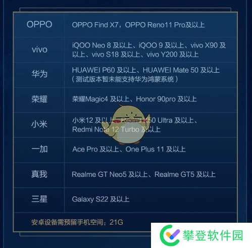 华为:HUAWEI P60及以上,HUAWEI Mate 50及以上(测试版本暂末能支持华为鸿蒙系统)
