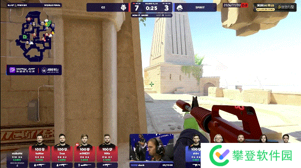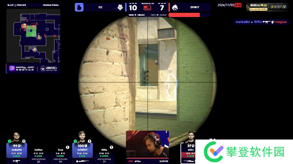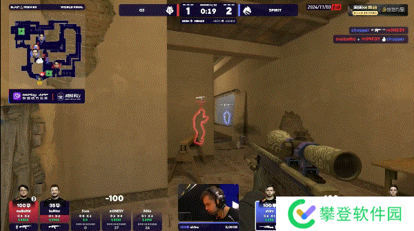 BLAST 世界总决赛 2024 决赛,G2对阵Spirit,前两张图G2发挥非常不错,都是在下半场直接锁住比分拿下胜利。进入图三后G2上半场先做进攻方就拿到8-4领先,换防过后再次收下手枪局,后续虽然被Spirit追上几分,但是状态火热的m0NESY没有给他们任何机会,最终以13-7赢下比赛。
