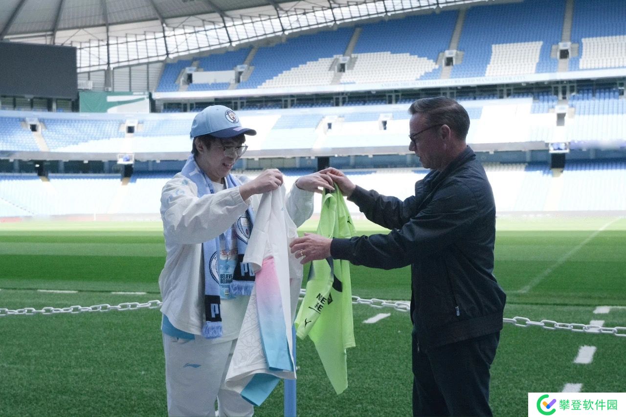 另一边,BLG辅助选手LvMao搭档LPL主持人余霜参观了彼时尚未完成英超四连冠壮举的曼城。他们与俱乐部名宿保罗·迪科夫进行了交流,后者谈起电竞时认为,它和体育运动一样都很受年轻人的喜爱。
