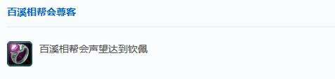 4、当玩家的百溪相帮会声望达到钦佩可获得【百溪相帮会尊客】。