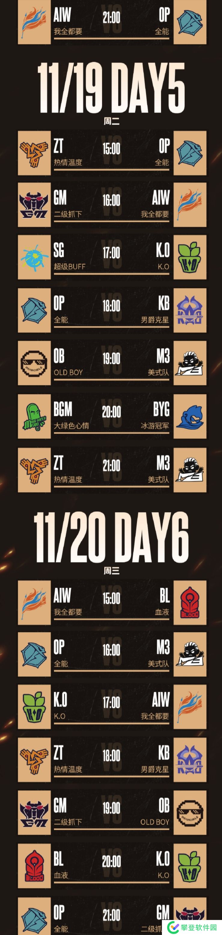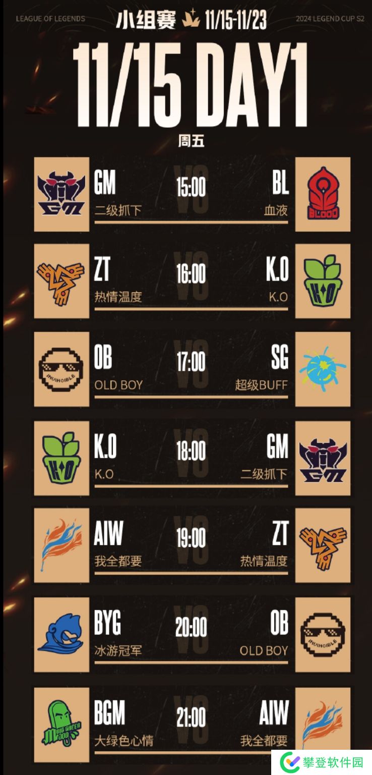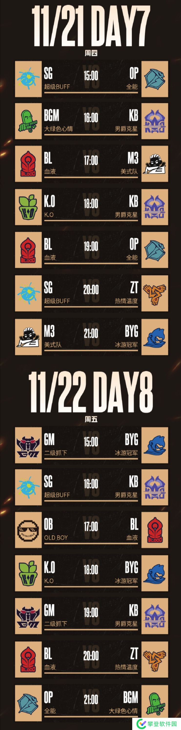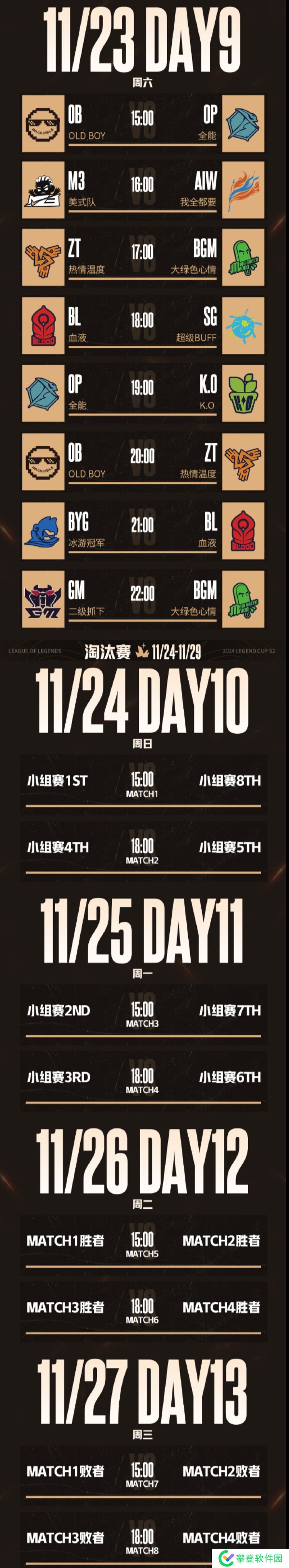 小组赛(11月15日-23日):BO1单循环,积分制,每一场都至关重要!
