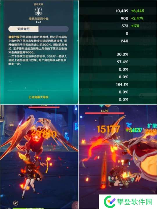 3379点面板可以提升下落攻击6758点等效攻击力,实际造成的伤害为15177,相较于打重击伤害提升94.32%。