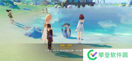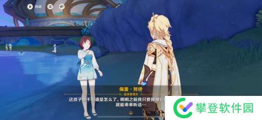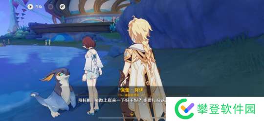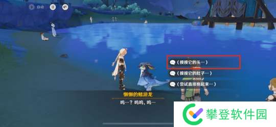 走到对面鳍游龙处,对话选择“(摸摸它的头···)”