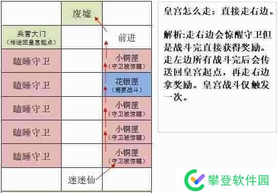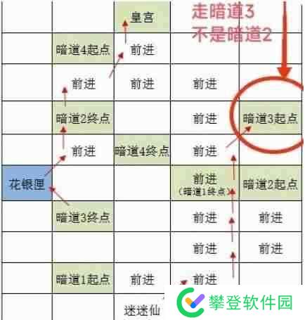 3、道坛:迷迷仙-前进右-前进-前进左-前进左-前进(暗道1)-暗道3起点-花银匣-暗道2终点-皇宫