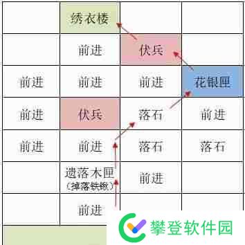 5、废墟:前进-遗落木匣-前进左-落石-花银匣-伏兵-绣衣楼