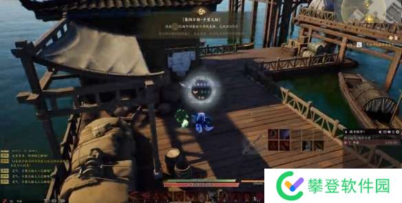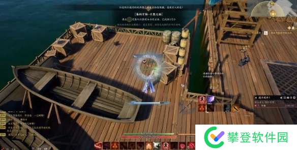 1、来到码头上,这里有许多船只摆放着,边上还有箱子,在箱子上有灵体。