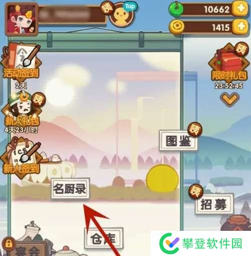 1、玩家首先需要登录到游戏的主页面,然后点击左上方的名厨录。