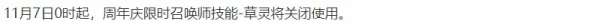 【解读】在峡谷中叱诧风云接近1个月的草灵,也会在11月7日0点下架,之后就再也无法携带使用了。