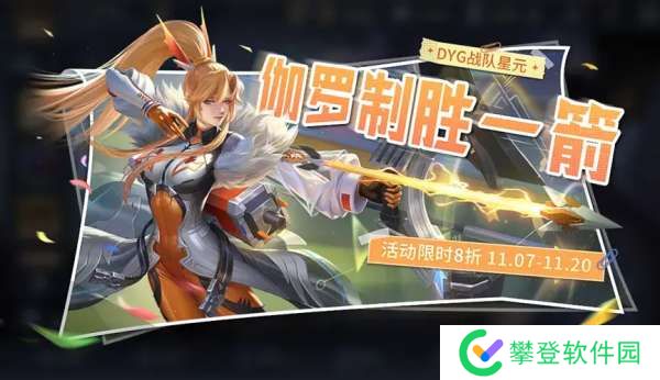 11月7日至11月20日,同样是为期两周的时间,会上架伽罗全新的限定星元,这也是跟DYG战队联动的套装,名字叫做箭羽风息·橙胜无界。
