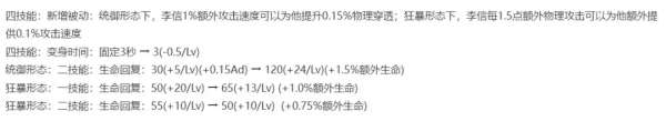 此外,四技能的变身时间,也会从固定的3秒改为3~2秒。