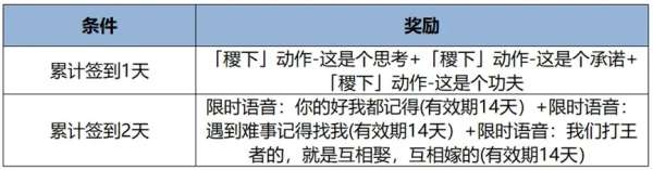 累计签到1天,就可以拿到限定的稷下动作,签到2天则有限时语音包,如“我们打王者的,就是互相娶,互相嫁的”,就非常适合CP在双排时使用。
