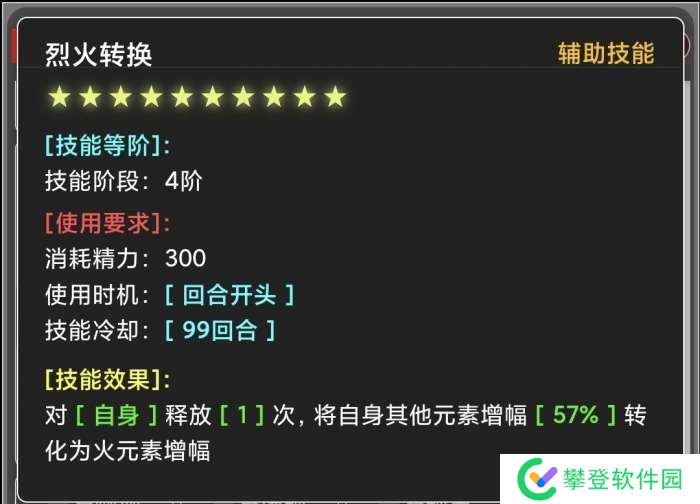 【卡片:烈焰领主 - 解锁途径:每日副本 -备选 】 火抗抵消= 烈火转换 【辅助技能众多】【不进行推荐】【按需求选择】【按副本】