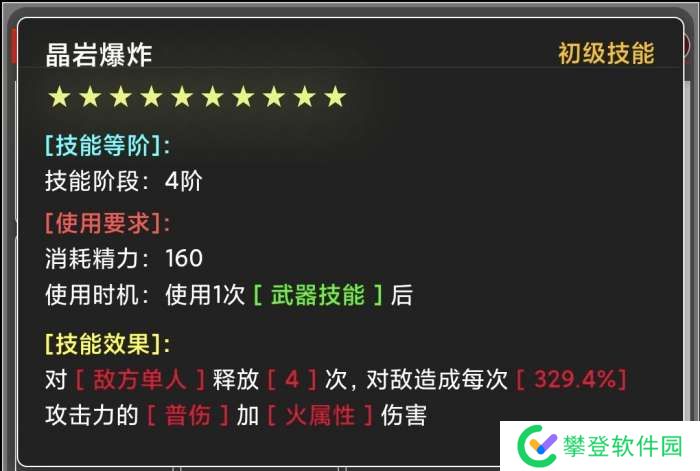 【卡片:烈焰守卫 - 解锁途径:每日副本 -优选】【初级技能满星成型选择顺序】 晶岩爆炸 > 烈焰爆 > 爆岩喷吐 (低于4阶为新手过渡) (获取难度低&章节要求)