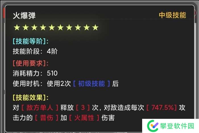 【卡片:烈焰魅魔 - 解锁途径:每日副本 -难度易】【中级技能满星成型选择顺序】 燃烧爆弹> (爆炎箭 - 伤害低控制) > 火爆弹 > 火炎弹 ( 增加控制率就优先选择爆炎箭) (低于4阶为新手过渡) (控制技能获取难度大,需要日积月累)