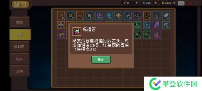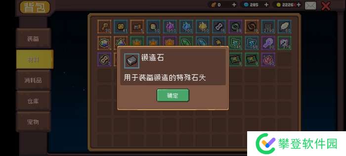 ①、锻造石:用来给装备打造新的词条,可打造出的词条取决于装备初始词条。(这个石头随便用!想怎么用怎么用,根本用不完!背包一直随随便便七八百个,掉的多得很!)