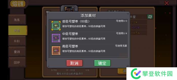 ⑥、可塑券:装备锻造有次数上限,当次数用完,可以用这个券来增加锻造次数,也很好理解,共三种,增加次数不同。