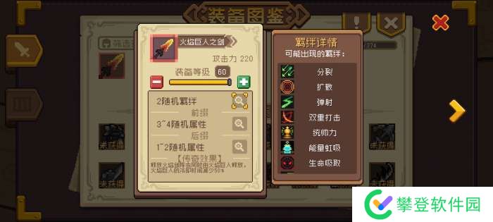 ①、随便打开图鉴点个装备就能看到,60级装备拥有两条可重铸羁绊+3-4条前缀词条+1-2条后缀词条,也就是说初始词条最多六条,至于是哪些可以点下图那个放大镜看。需要注意的是这些词条是装备掉落的瞬间就固定了,不可改变!!!!切记切记!!!!