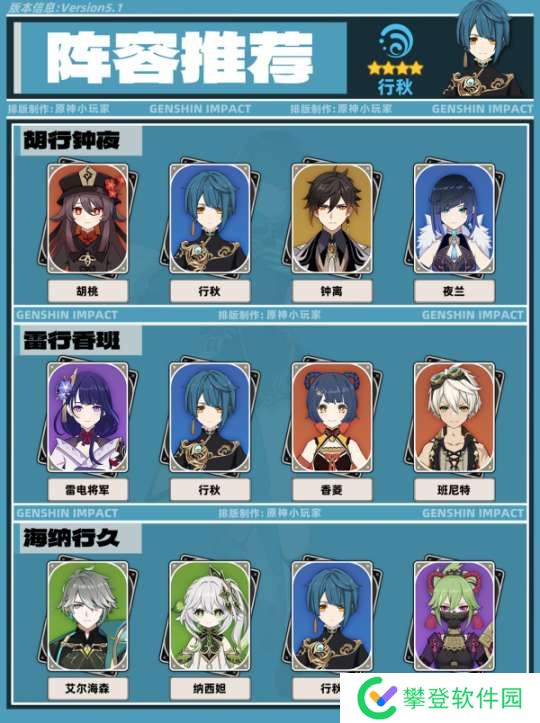 ② 雷行香班:雷神+行秋+香菱+班尼特