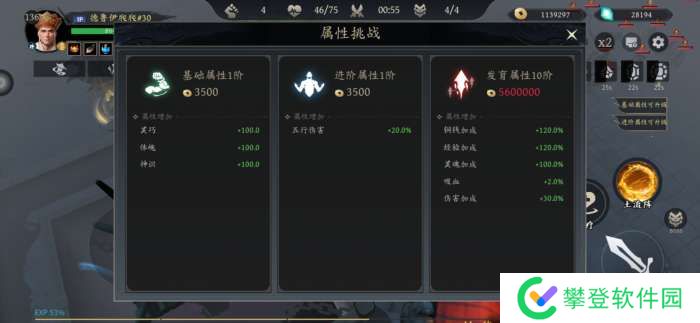 阶段2,打boss,职业1:任意火五行,职业2:七仙女,职业3:吕布,职业4:任意火五行,职业5:猴子。刷怪就不说了,选灵巧等级提升属性,赵云刷怪成长,boss选全火,有火属性加成,七仙女加成很高,比五个火要好。