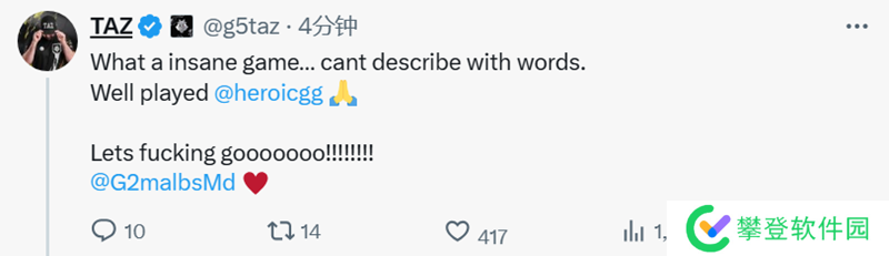 TaZ:多么精彩的一场比赛,难以用语言来形容。
