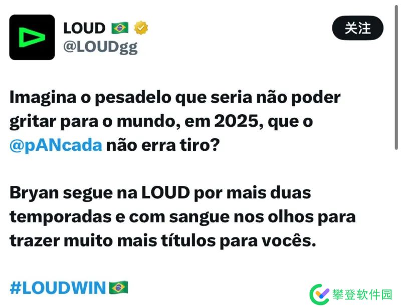 继日前宣布与tuyz续约后,巴西战队LOUD又正式宣布,选手pANcada将继续为战队效力至2026年赛季。原文如下: