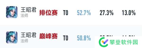 王昭君随着周年庆皮肤上线以及辅助玩法的开发,近期排位胜率52.7%、巅峰赛胜率50.8%,成为了新版本的上分黑马。