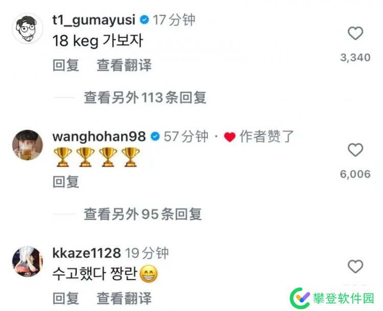 直播吧11月20日讯T1官宣Doran选手加入战队,Doran选手更新ins后,众选手纷纷为其评论,具体内容如下: