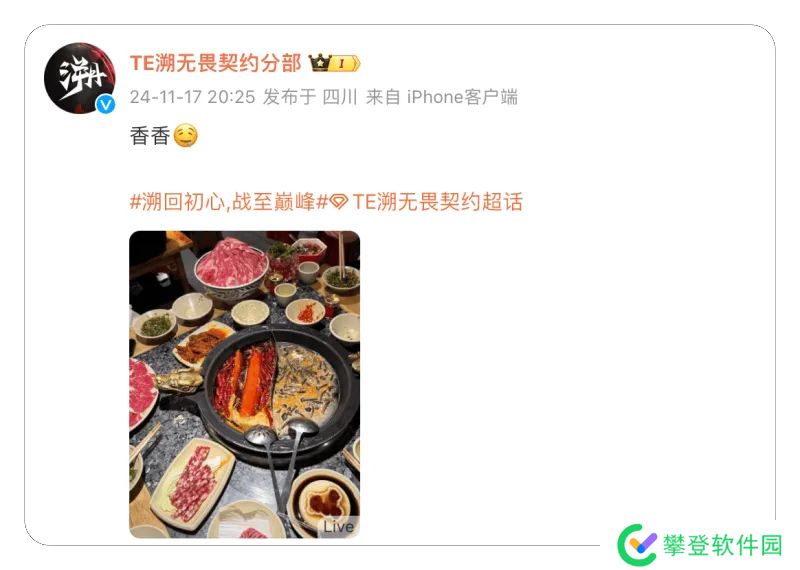 在到达成都开始备战源能邀请赛之际,TE晒出晚餐照并配文:香香!