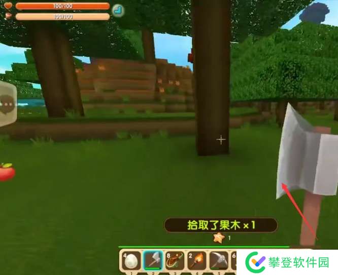 1、进入游戏来地图上收集木头,将其合成木板,然后制作出一个工具台,接着将工具台放在地面上,放入材料制作出石头镐和石头铲。