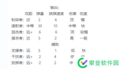 2、输出:粉碎者 速射者 狙击者 猎杀者