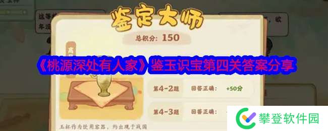 桃源深处有人家鉴玉识宝第四关答案是什么?鉴玉识宝活动当中一共有8个活动关卡,每个关卡有三个问题答案,本次给大家带来了《桃源深处有人家》鉴玉识宝第四关答案分享,大家不知道答案是速来看看正确答案吧!
