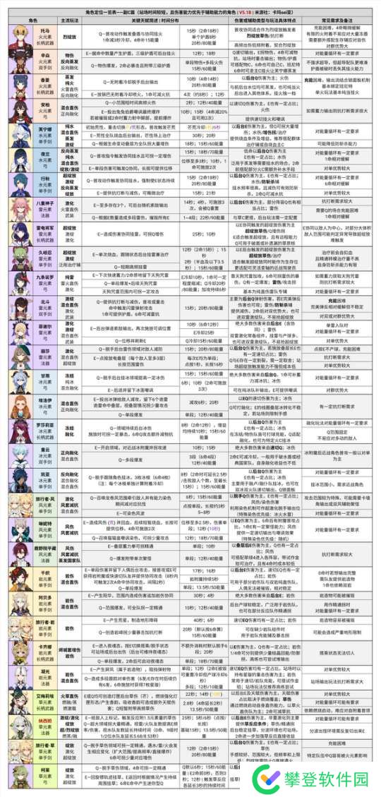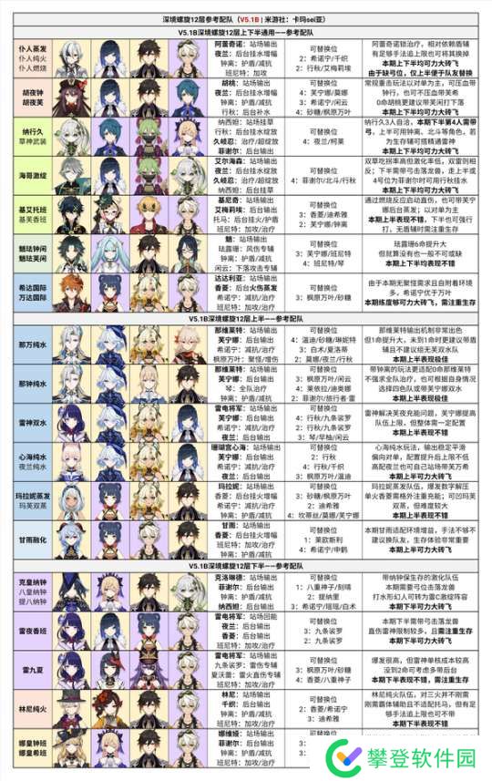 本篇为V5.1的版本配队附录,提供当前版本第二期深境螺旋12层的参考配队及其分析依据,并附符合当前版本的全角色主流定位及功能性装备一览表。