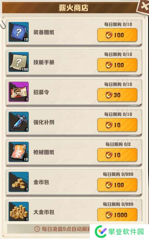 薪火商店作为主线的精英副本,在薪火商店中优先换:金币、枪械图纸、强化补剂,招募令、技能手册(招募令与技能手册在咱们有多余的薪火币,可以考虑换,招募令是为了获取红色超时空,技能手册是为了让燃油弹提高升到26级几率!)
