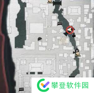 1、在图中找到标注点,前往桥段中央寻找名为梅离茂的NPC,他会告诉玩家他遗失了一把雨伞。
